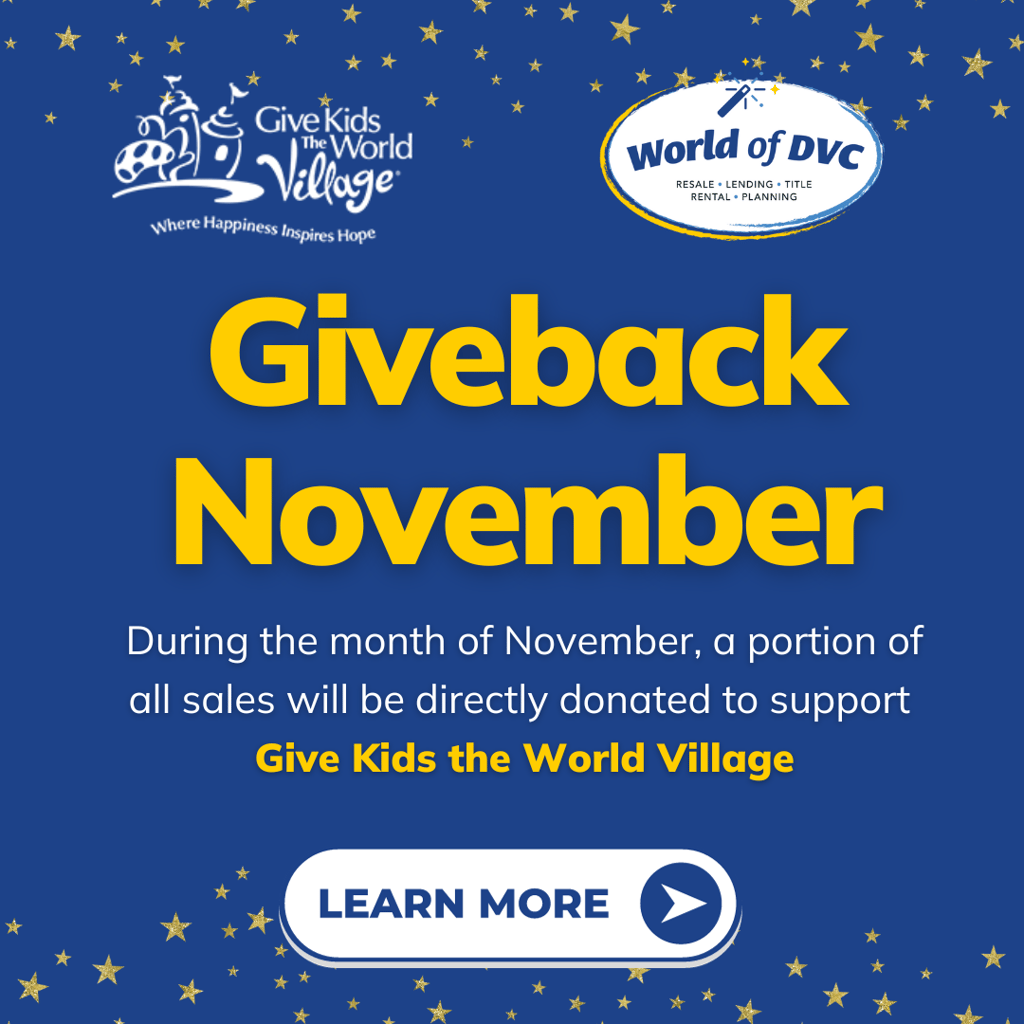 Throughout November, a portion of proceeds from all World of DVC brands—including DVC Rental Store, DVC Resale Market, Monera Financial, Magic Vacation Title, and Be Our Guest Vacations—will directly support this wonderful cause. The team shares their passion for giving back and invites viewers to join them in making a difference. Learn how you can participate in this meaningful initiative by visiting our Giveback November Page today!